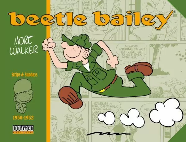 BEETLE BAILEY comienza su andadura en el mundo de los cómics como estudiante universitario, vago y poco amigo de los libros, toda una novedad que se adelantó a su tiempo. Pero entonces estalla la guerra de Corea y, como tantos otros jóvenes, Beetle acaba por enrolarse en el ejército. Beetle no cambia de personalidad, sigue siendo vago y poco amigo del esfuerzo físico. Maniobras, servicio de cocinas, guardias, arrestos, escaqueos, permisos y búsqueda de chicas conforman a partir de entonces su vida. La parodia de la disciplina militar, que no de la guerra, cala entre el público y se convierte en un éxito rotundo. Porque Beetle nunca fue a la guerra, nunca pegó un tiro. Y nunca le vimos los ojos.