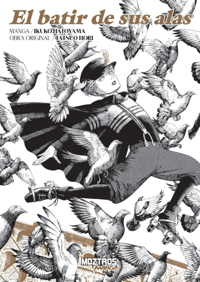 El batir de sus alas es una adaptación al manga de un relato del legendario novelista japonés Tatsuo Hori. En estas páginas, inspirado por Zigomar, el ladrón de ficción, Gigi decide convertirse en paloma ladronzuela y causar estragos en su pueblo entre las montañas. Atrapado entre sus viejos amigos y un incansable detective, Gigi se desliza por esta ficción fantástica como un actor atrapado en su propia obra, y deberá encontrar la salida antes de que todo acabe en tragedia.