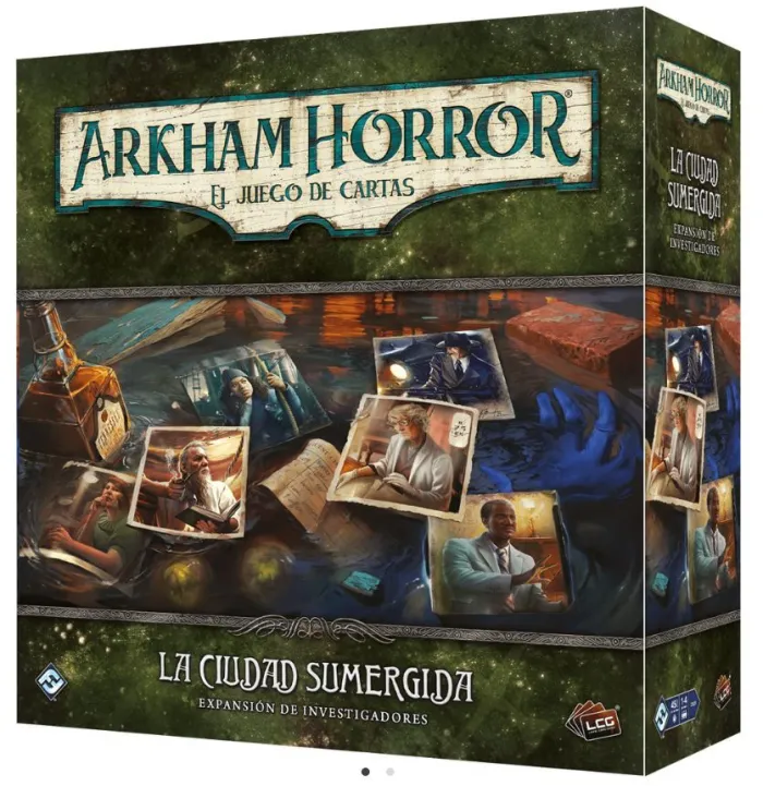La expansión de investigadores La ciudad sumergida presenta 6 investigadores nuevos y multitud de nuevas cartas de Jugador y opciones para el juego, incluidas nuevas cartas Especialista que aprovechan los rasgos de los investigadores. Protege a los vulnerables como Mario Tavares, la pescadora de arrastre; saca inspiración de los horrores como Lucius Galloway, el poeta; mantén los monstruos a raya con una lluvia de balas como Michael McGlen, el gánster; difumina la frontera entre ciencia y misticismo como Agatha Crane, la parapsicóloga; controla tu destino con visiones proféticas como Gloria Goldberg, la escritora; y prepárate para capear cualquier tormenta como George Barnaby, el abogado.