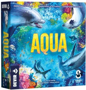 ¡Sumérgete en las cautivadoras profundidades de un arrecife de coral! En este ecosistema, haz que tus formaciones coralinas crezcan fuertes y formen hábitats prósperos con los que atraer a una gran variedad de fascinantes animales marinos. AQUA te invita a explorar la belleza y las maravillas del océano y ofrece un buen surtido de modos de juego para toda la familia. Diseñado por Dan Halstad y Tristan Halstad e ilustrado por Vincent Dutrait, AQUA se puede disfrutar en solitario o en grupos de hasta 4 jugadores, a partir de 8 años, en sesiones de entre 30 y 45 minutos de duración. Con el objetivo de sumar la mayor cantidad posible de puntos al final de la partida, los jugadores irán creando arrecifes de coral para atraer todo tipo de especies marinas a su zona de juego. En cada turno, los jugadores tomarán una loseta de un mercado común y la colocarán en su zona de juego. Las losetas son hexagonales y muestran tres tipos de formaciones de coral; a la hora de colocarlas, el color del coral debe coincidir con, como mínimo, uno de los lados de una loseta colocada previamente. Poco a poco, estos corales se convertirán en el hábitat de pequeños animales marinos. A su vez, los animales pequeños atraen a los más grandes, que recompensan con más puntos. Al final de la partida, el ganador es quien haya conseguido que crezcan las mejores formaciones coralinas y haya atraído la mayor cantidad de animales marinos, pequeños y grandes. Además, AQUA incluye varios modos de juego con dificultades variables, que se adaptan a las necesidades de cualquier grupo de juego. Y tanto para el modo solitario como para los grupos que busquen un desafío extra, el reglamento incluye 15 escenarios distintos y 25 retos específicos que pondrán a prueba su ingenio.