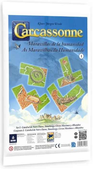 ¡Las maravillas de la humanidad han llegado a Carcassonne! Esta pequeña expansión añade 4 grandes losetas que representan varias maravillas de la humanidad: la catedral de Notre Dame, Stonehenge, el Circus Maximus y la Alhambra. Cada una de ellas te aportará una ventaja concreta, pero solo podrás elegir una en toda la partida. ¡Intenta conseguir deprisa la maravilla que te interesa para aprovecharla tanto como puedas!