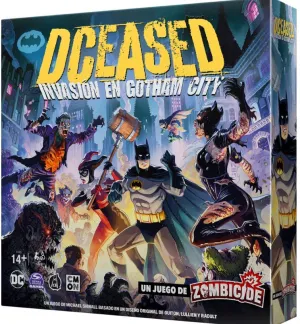 DCEASED: INVASIÓN EN GOTHAM CITY UN JUEGO DE ZOMBICIDE es un juego cooperativo en el que entre 1 y 4 jugadores controlan a los últimos superhéroes supervivientes que se enfrentan a héroes zombificados y a hordas de zombis manejados por el propio juego. ¡Para ganar deberás completar los objetivos de la misión, derrotar a los enemigos y rescatar a los transeúntes en peligro! ¡Eliminar zombis te proporcionará la experiencia necesaria para convertirte en un superhéroe aún más poderoso, pero cuanto más fuerte seas, más zombis aparecerán para darte caza! ¡Solo trabajando en equipo y forzando sus poderes hasta el límite podrán los superhéroes poner fin a la amenaza de la Antivida!