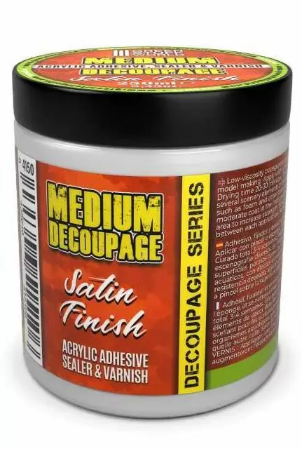 Adhesivo, fijador y barniz acrílico de baja viscosidad con múltiples aplicaciones en el modelismo, el mundo de las maquetas así como en la técnica del decoupage, y por su puesto las manualidades. Aplicar con pincel o pinceles de weathering, y limpiar con agua. Al ser un producto acrílico, puede ser tintado con tintas acrílicas para obtener otros acabados. Tiempo de secado 20-30 minutos. Curado total 3-4 semanas. Puede usarse como pegamento maquetas de multitud de materiales como por ejemplo flocados, papel, arena, cesped, o cualquier otro elemento de escenografía, como aislante superficial con aplicación en puzzles y trabajos de decoupage, y finalmente como sellador de superficies porosas como las espuma y otros elementos con texturas.