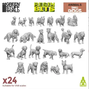 Cada set contiene 24 x Perros Pequeños de resina 3D.